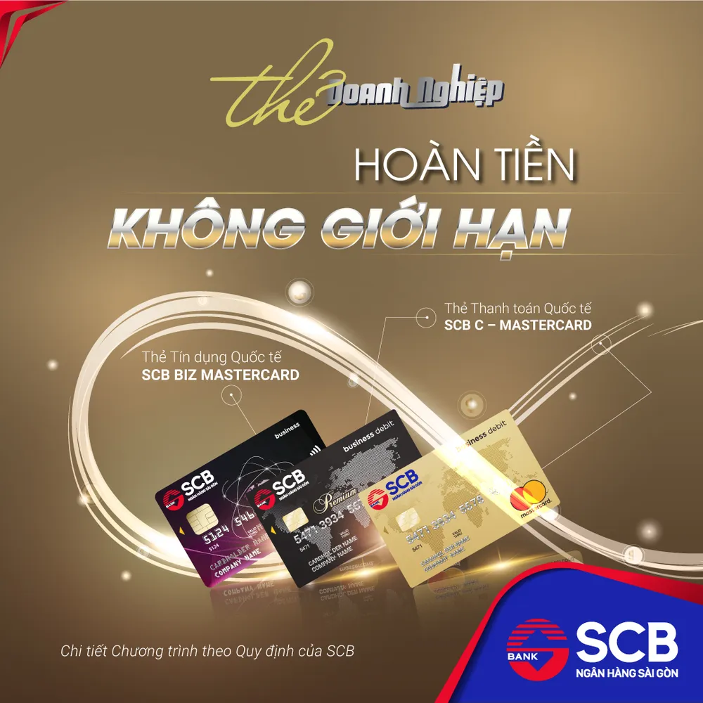 Đồng thời, nhằm khuyến khích hình thức thanh toán không dùng tiền mặt và gia tăng nhiều đặc quyền dành cho khách hàng doanh nghiệp, SCB tung ra chương trình“Thẻ Doanh nghiệp SCB – Hoàn tiền không giới hạn” kéo dài tới 31-12-2020 dành cho Thẻ Thanh toán quốc tế SCB C-MasterCard và Thẻ Tín dụng Quốc tế SCB Biz Mastercard.