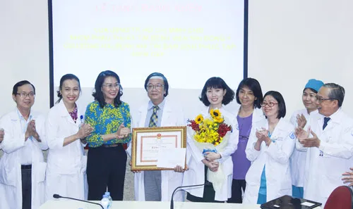 Phó Chủ tịch UBND TPHCM Nguyễn Thị Thu tặng bằng khen cho ekip mổ Bệnh viện Nhi Đồng 1