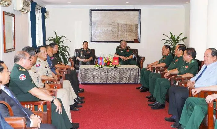 Trung tướng Hoàng Xuân Chiến chào đón các thành viên trong lực lượng bảo vệ biên giới Campuchia