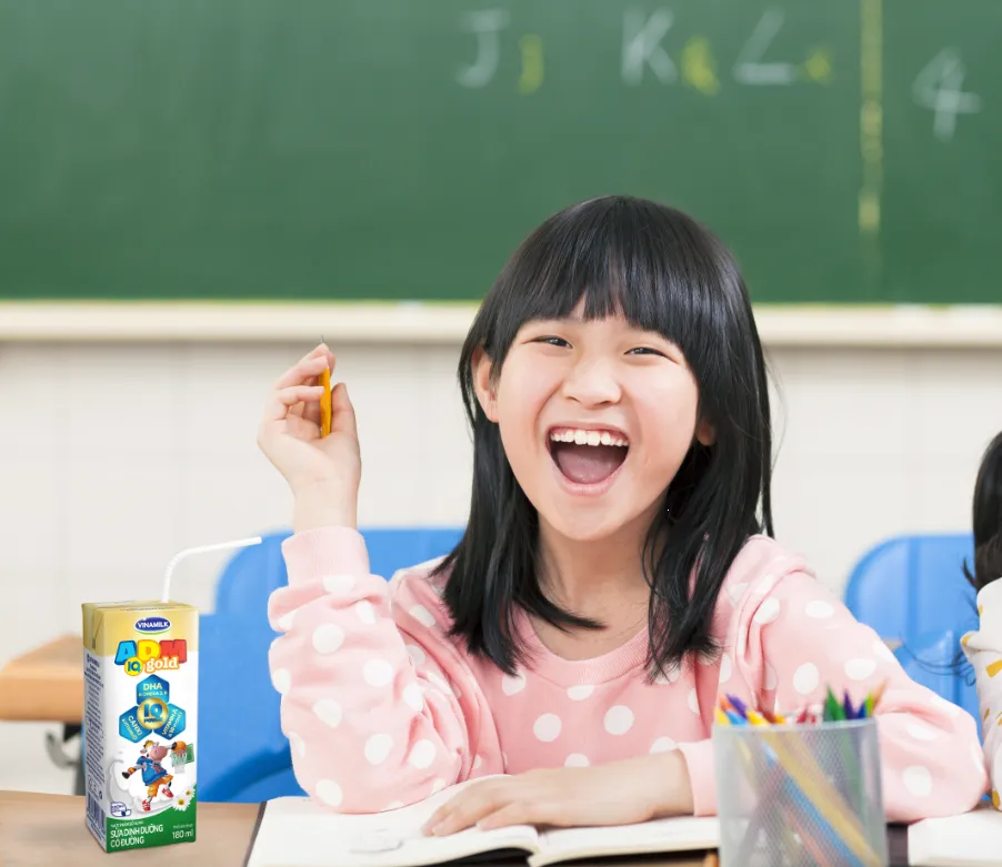 Thời gian biểu một ngày đa dạng hoạt động là thế, làm thế nào để bé duy trì sự khỏe khoắn, năng động? Ba mẹ có thể nhờ đến các “vệ sĩ” đắc lực như sữa chua uống Vinamilk SuSu IQ, chứa DHA, Vitamin A, cùng Canxi và Vitamin B6, B12 và cả chất xơ hòa tan rất tốt cho hệ tiêu hóa của bé – là nơi chứa nhiều lợi khuẩn giúp tăng cường hệ miễn dịch.