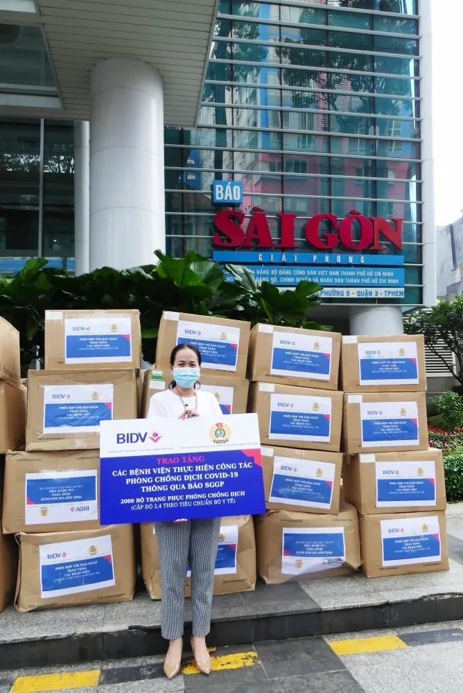 Bà Nguyễn Thị Thu Giang, Phó Giám đốc Chi nhánh BIDV TPHCM, Chủ tịch Công đoàn BIDV TPHCM cho biết, đồng hành cùng Báo Sài Gòn Giải Phóng, đây là tấm lòng của tập thể Ngân hàng TMCP Đầu tư và Phát triển Việt Nam (BIDV) dành cho lực lượng tuyến đầu phòng chống dịch bệnh Covid- 19 tại TPHCM. Dù dịch bệnh tại TP đang có phần giảm dần, nhưng lực lượng tuyến đầu vẫn đang miệt mài với công việc của mình.