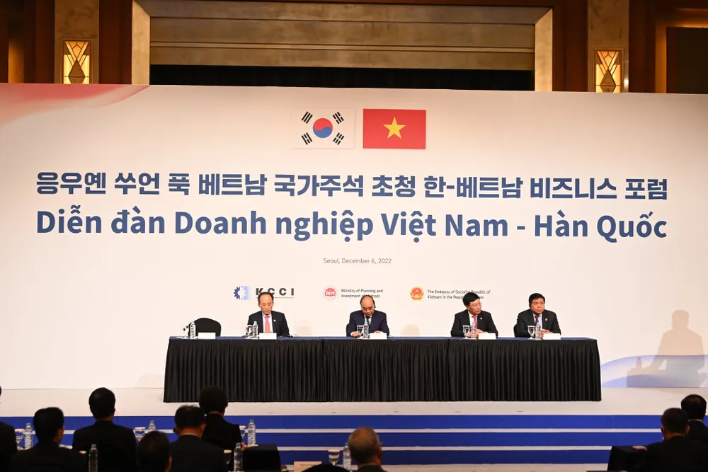 Sáng 6-12, Phòng Thương mại và Công nghiệp Hàn Quốc (KCCI) cùng các Hiệp hội kinh tế lớn của Hàn Quốc phối hợp Bộ Kế hoạch và Đầu tư Việt Nam và Đại sứ quán Việt Nam tại Hàn Quốc tổ chức Diễn đàn doanh nghiệp Việt Nam- Hàn Quốc.