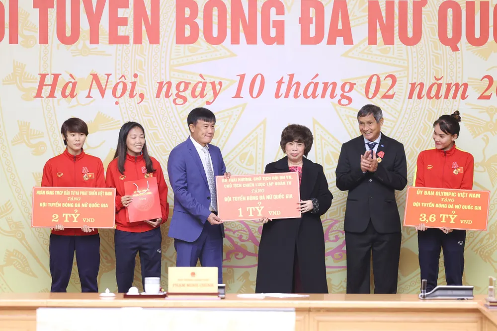 Phát biểu tại sự kiện, Thủ tướng Chính phủ Phạm Minh Chính tôn vinh các nữ cầu thủ là những “cô gái kim cương”, đồng thời bày tỏ mong muốn các cơ quan, ban ngành và doanh nghiệp, xã hội cùng thấu hiểu, chia sẻ, lắng nghe những khó khăn, vất vả của đội tuyển bóng đá nữ, để có các giải pháp lâu dài phát triển bóng đá nữ nói riêng và các môn thể thao thi đấu, thể thao đỉnh cao nói chung.