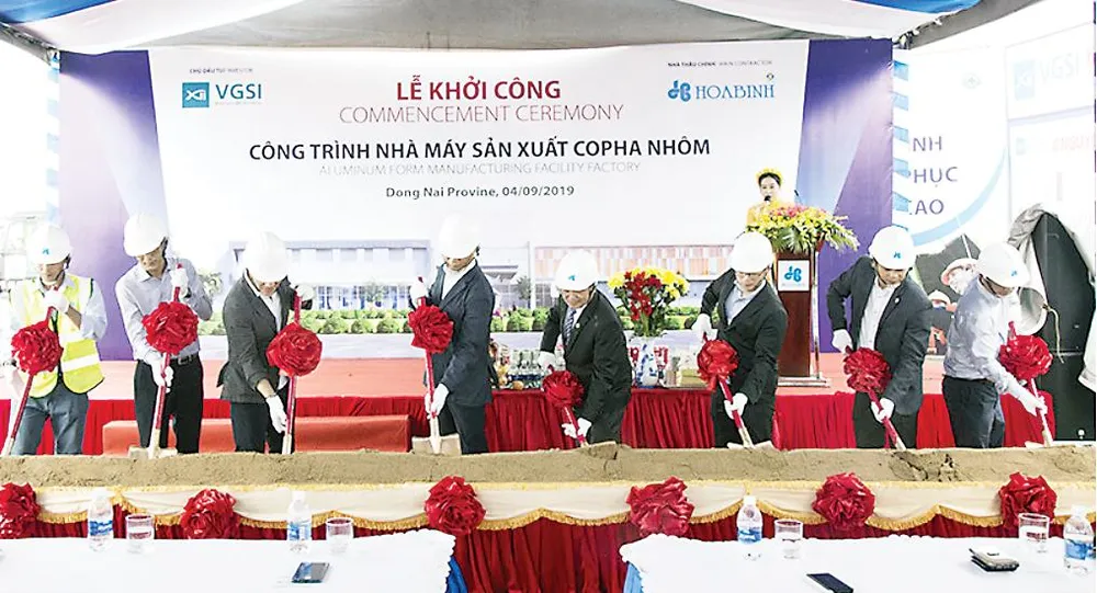 Chiều ngày 4-9-2019, Tập đoàn Xây dựng Hòa Bình đã tổ chức khởi công xây dựng Nhà máy Coffa nhôm VGSI tại huyện Nhơn Trạch, Đồng Nai.