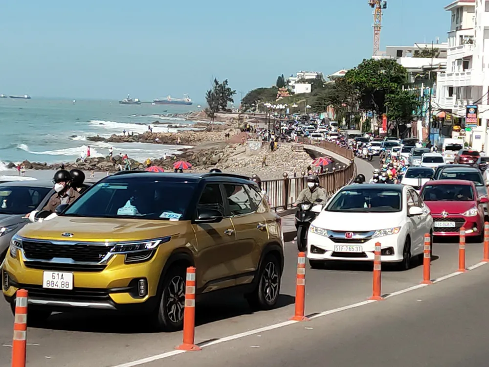 Xe cộ tấp nập đổ về các bãi biển của TP Vũng Tàu