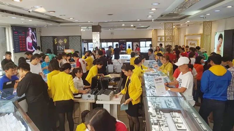 Tương tự, chưa đến 7 giờ sáng nhưng không khí tại các cửa hàng của PNJ trên địa bàn TPHCM đã sôi động hơn hẳn.