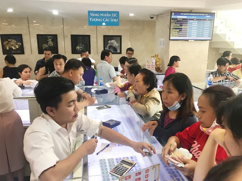 Không chỉ tại các trụ sở kinh doanh vàng lớn mà những tiệm vàng trên đường An Dương Vương quận 5 như Kim Xuyến Minh, Kim Phụng, Kim Lý cũng nhộn nhịp người dân đến mua vàng. Các tiệm vàng gần khu vực chợ Bàn Cờ, chợ Vườn Chuối quận 3; các tiệm vàng gần chợ Bến Thành quận 1 cũng rất đông khách đến mua vàng nhẫn và vàng trang sức.