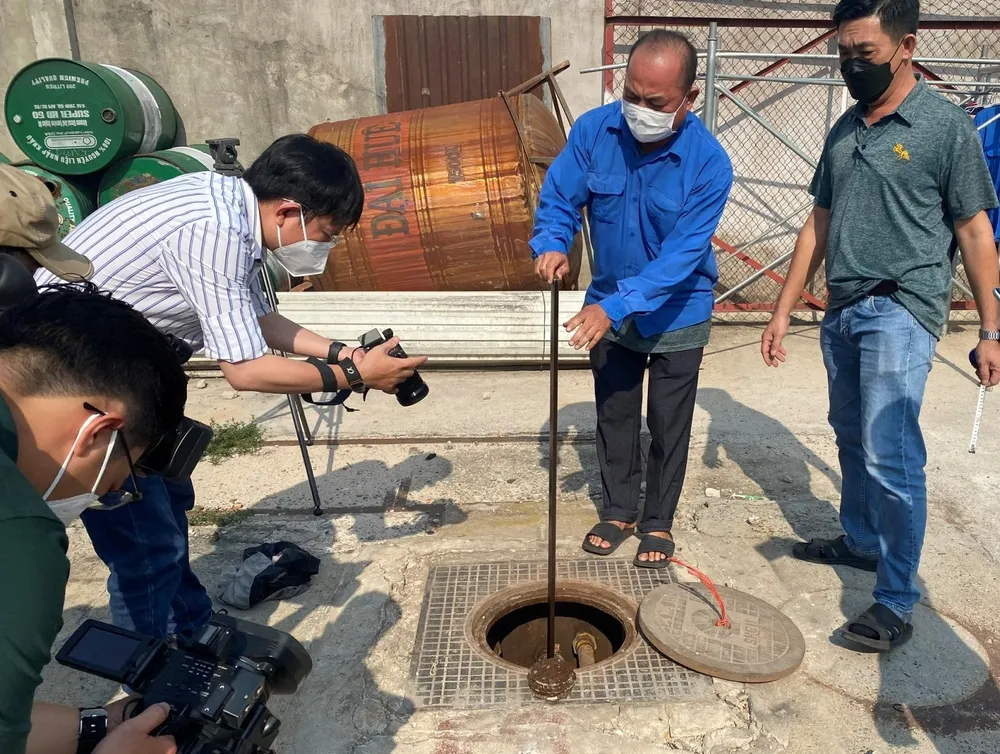 Lực lượng liên ngành kiểm tra lượng xăng trong bồn tại một cây xăng trên địa bàn TPHCM. Ảnh: GIA HÂN