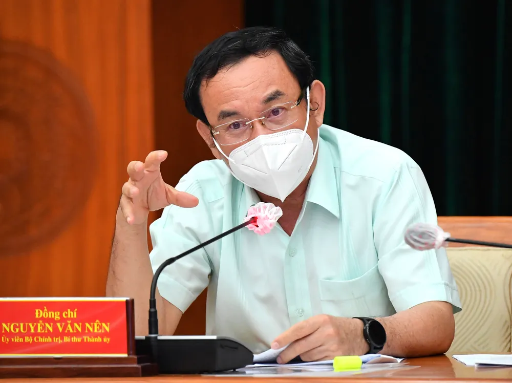 | Tại buổi sơ kết, Bí thư Thành ủy TPHCM Nguyễn Văn Nên đặt ra những câu hỏi cụ thể đối với lãnh đạo các địa phương về những nội dung cần thảo luận liên quan đến việc cụ thể hóa Chỉ thị 12 của Ban Thường vụ Thành ủy TPHCM về tăng cường một số biện pháp thực hiện Chỉ thị 16 của Thủ tướng về phòng chống dịch Covid-19 trên địa bàn TPHCM. Trong đó có việc xác định trách nhiệm của chính quyền trong việc đảm bảo nhu cầu lương thực, thực phẩm thiết yếu của người dân ở khu vực có nguy cơ rất cao cũng như đối với các gia đình có ca F0, F1 cách ly tại nhà. |
