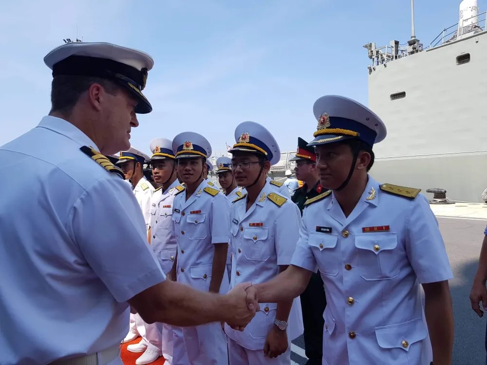 Sáng 7-5, 800 sĩ quan của tàu HMAS Canberra và HMAS Newcastle đã cập cảng quốc tế Cam Ranh, mở đầu chuyến thăm chính thức Việt Nam trong vòng 4 ngày.