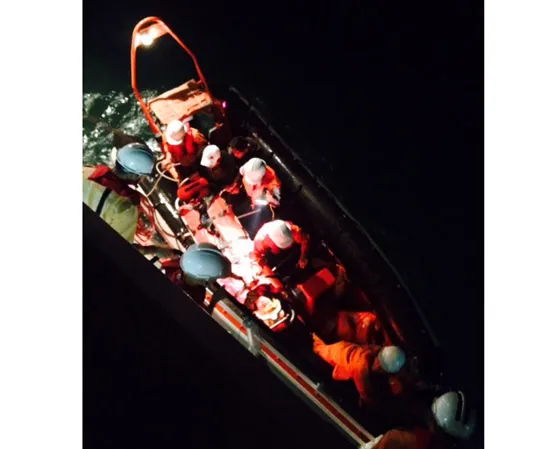 Xuồng cao su chuyển ngư dân Trần Quốc Tín từ tàu cá sang tàu SAR 274