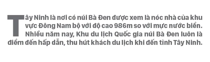 Tây Ninh là nơi có núi Bà Đen được xem là nóc nhà của khu vực Đông Nam bộ với độ cao 986m so với mực nước biển. Nhiều năm nay, Khu du lịch Quốc gia núi Bà Đen luôn là điểm đến hấp dẫn, thu hút khách du lịch khi đến tỉnh Tây Ninh.