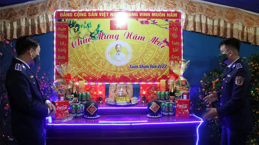 Trên Tàu cảnh sát biển 2013 (Hải đội 202), bàn thờ, ảnh Bác Hồ được bày trang trọng ấm áp, cùng đầy đủ bánh, kẹo, mứt, bánh chưng… Đặc biệt là tờ báo tường với những bài thơ, văn được viết và trang trí sinh động do chính tay các cán bộ, chiến sĩ của tàu chuẩn bị.
