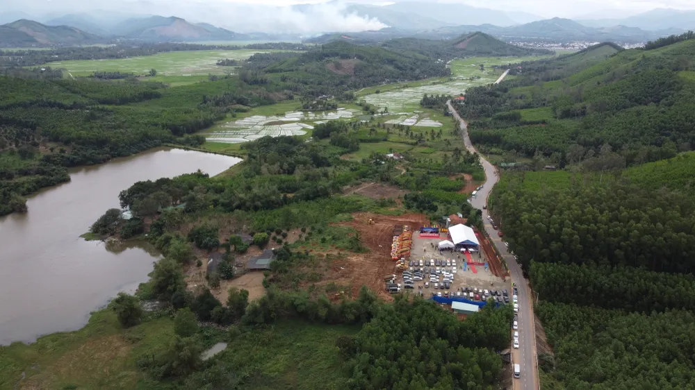 | Toàn cảnh lễ khởi công dự án cao tốc Bắc - Nam phía Đông tại điểm cầu tỉnh Bình Định. Ảnh: NGỌC OAI |