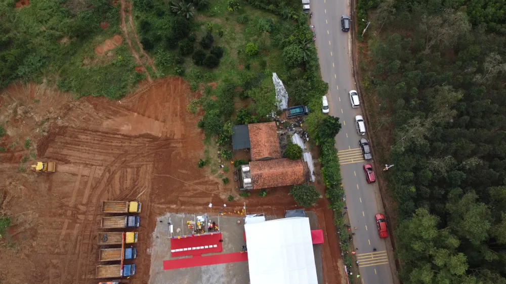 | Các đơn vị chức năng tại các điểm cầu chuẩn bị máy móc, phương tiện chuẩn bị lễ khởi công, động thổ tại điểm cầu Bình Định, sáng 1-1-2023. Ảnh: NGỌC OAI |