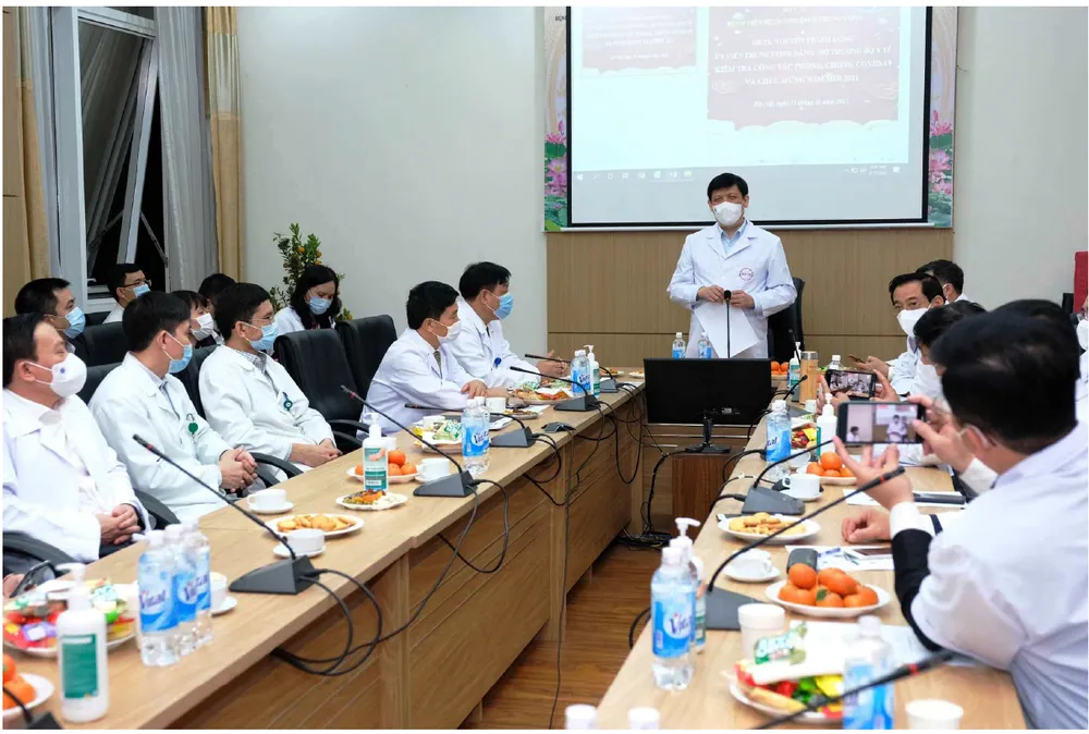 Cùng đón tết xa nhà với các đồng nghiệp, ông Nguyễn Trọng Khoa, Phó Cục trưởng Cục Quản lý khám chữa bệnh (Bộ Y tế) và nhiều y, bác sĩ được tăng cường của Bệnh viện Bạch Mai, Bệnh viện Đại học Kỹ thuật Y tế Hải Dương đã tới thăm hỏi và chúc tết các bệnh nhân đang điều trị tại đây, đặc biệt là các bệnh nhi nhỏ tuổi để các bé vơi đi nỗi nhớ nhà.