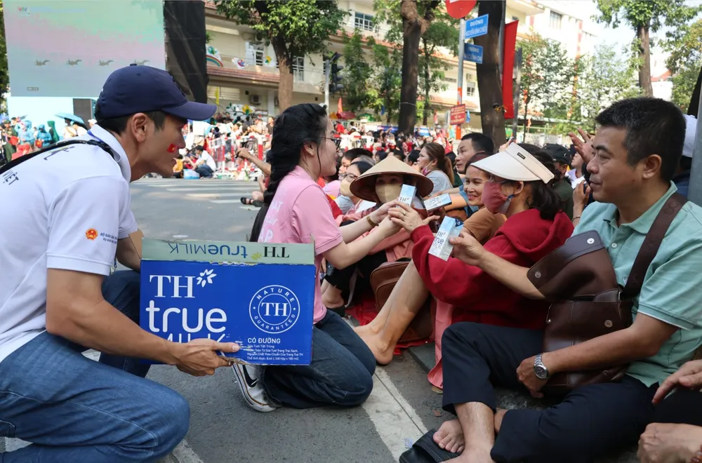 Thông qua Bộ Tư lệnh Quân khu 7, Bộ Tư lệnh TPHCM, Hội Liên hiệp Phụ nữ Thành phố và Bộ chỉ huy Quân sự tỉnh Bà Rịa - Vũng Tàu, bắt đầu từ ngày tổng duyệt, Tập đoàn TH đã đóng góp hơn 110.000 hộp sữa tươi thương hiệu TH true MILK, Dalatmilk và nước uống tinh khiết TH true WATER tại các điểm tiếp sức dọc đường Lê Duẩn - quận 1 nhằm bổ sung dinh dưỡng và năng lượng cho các chiến sĩ tham gia các chương trình Tổng duyệt diễu binh, diễu hành cũng như nhân dân theo dõi chương trình Lễ kỷ niệm sáng 30-4 ở các điểm tiếp sức theo lộ trình lực lượng diễu binh, diễu hành đi qua như Công viên Bến Bạch Đằng, SVĐ Hoa Lư, giao lộ Nam Kỳ Khởi Nghĩa- Nguyễn Du và một số giao lộ có màn hình led.