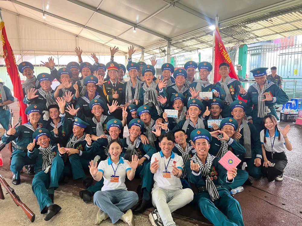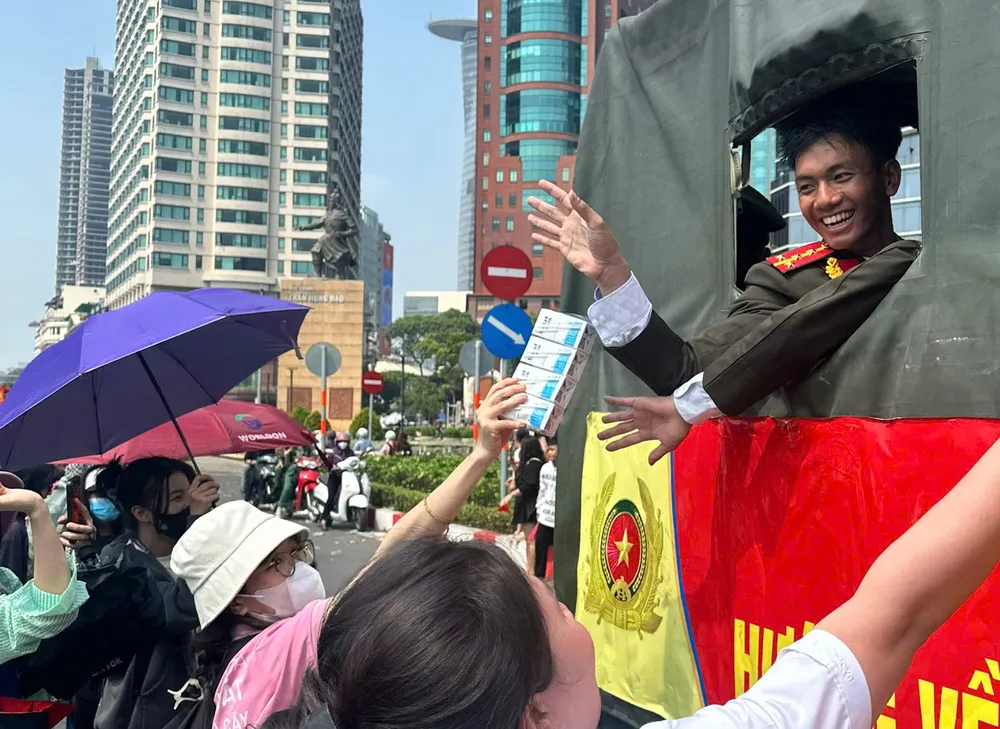 Các tình nguyện viên nhanh chóng truyền tay chai nước, hộp sữa để tiếp sức, động viên các chiến sĩ. Trong giây phút chia tay bịn rịn và lưu luyến, quân và dân cùng hòa nhịp cất vang lời hát các ca khúc cách mạng hừng hực khí thế như một lời hẹn ước ở các sự kiện trọng đại khác của đất nước trong thời gian sắp tới.