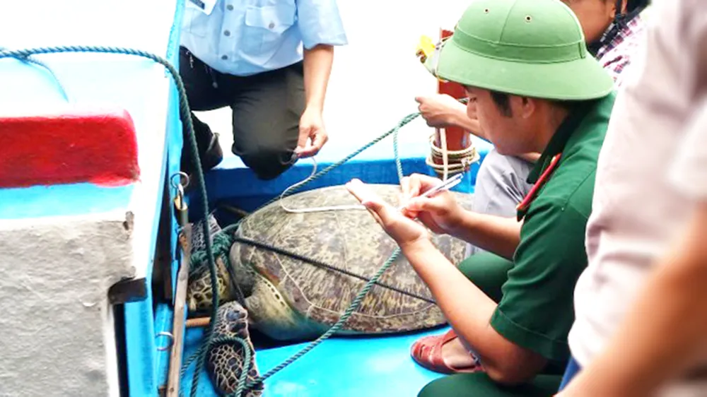 Cá thể rùa xanh dài 1,02m, nặng 120kg. Tra cứu thông tin rùa biển, ngành chức năng xác định, đây thuộc loài rùa đang bị đe dọa theo phân loại của tổ chức bảo tồn thiên nhiên quốc tế và cấm vận chuyển quốc tế theo Công ước CITES - Công ước về thương mại quốc tế các loài động, thực vật hoang dã nguy cấp.