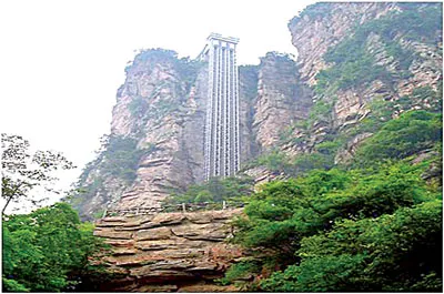 Đó là thang máy tại khu rừng đá Trương Gia Giới (di sản UNESCO) ở tỉnh Hồ Nam, Trung Quốc. Nơi đây có hơn 3.100 cột đá cao ngất ngưởng, có cột tới 800m, phía dưới là rừng rậm, hồ nước và hang động kỳ vĩ. Tất cả trải rộng trên diện tích 690km². Đặc biệt tại đây có thang máy Bạch Long đưa du khách lên đỉnh vách đá cao 326m.