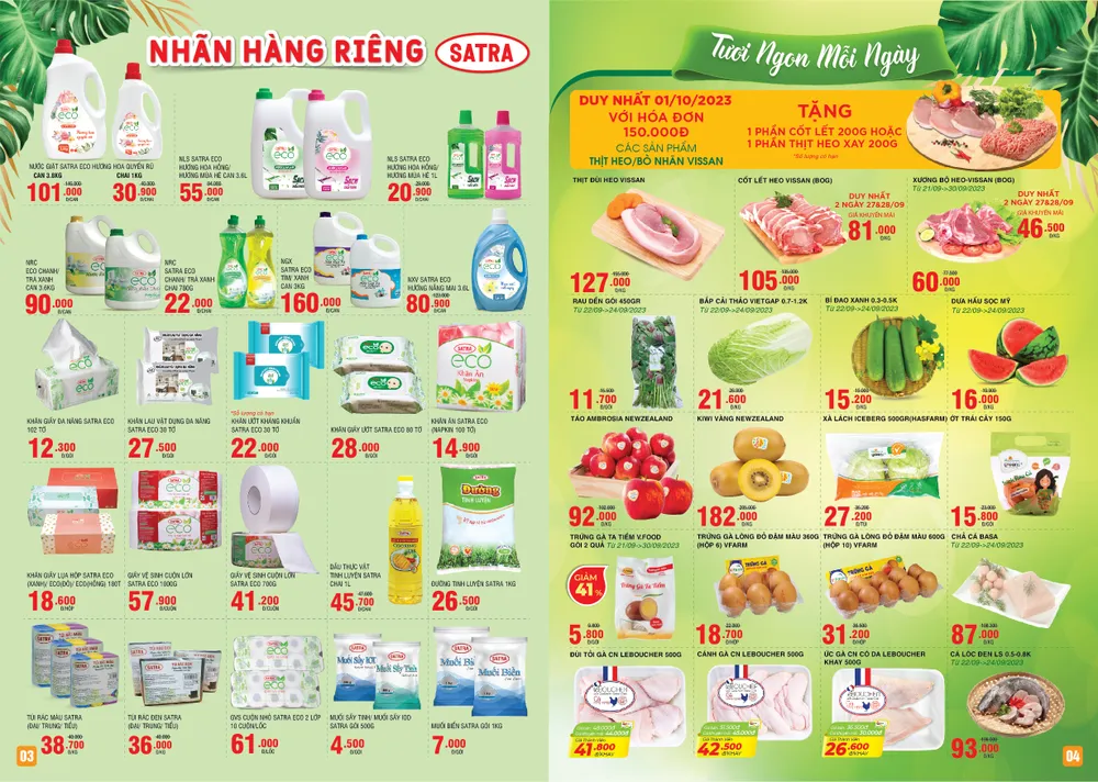 Riêng tại các siêu thị Satramart, chương trình tươi ngon mỗi ngày sẽ có những mức giảm giá đặc biệt cho khách hàng như thịt đùi heo VISSAN còn 127.000 đồng/ký, cốt lết heo VISSAN còn 105.000 đồng/ký; duy nhất 2 ngày 27 đến 28-9, cốt lếch heo VISSAN còn 81.000 đồng/ký, xương bò heo VISSAN còn 46.500 đồng/ký.. cùng nhiều sản phẩm thực phẩm khác (chi tiết vui lòng xem tại tờ rơi)