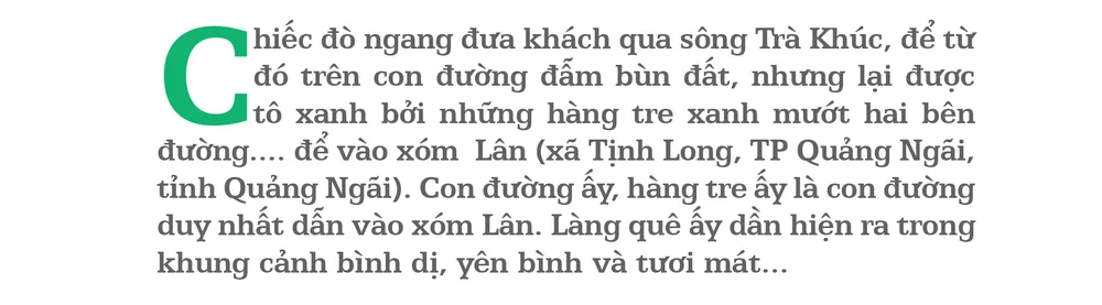 Chiếc đò ngang đưa khách qua sông Trà Khúc, để từ đó trên con đường đẫm bùn đất, nhưng lại được tô xanh bởi những hàng tre xanh mướt hai bên đường.... để vào xóm Lân (xã Tịnh Long, TP Quảng Ngãi, tỉnh Quảng Ngãi). Con đường ấy, hàng tre ấy là con đường duy nhất dẫn vào xóm Lân. Làng quê ấy dần hiện ra trong khung cảnh bình dị, yên bình và tươi mát...