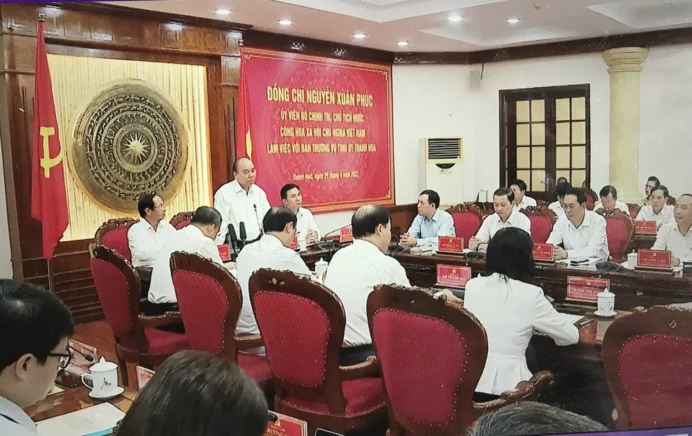 Sáng 29-8, Chủ tịch nước Nguyễn Xuân Phúc chủ trì buổi làm việc với Ban Thường vụ Tỉnh ủy Thanh Hóa về phát triển kinh tế - xã hội và bảo đảm quốc phòng-an ninh trên địa bàn tỉnh. Cùng dự có Phó Thủ tướng Lê Văn Thành và lãnh đạo một số bộ, ngành Trung ương.