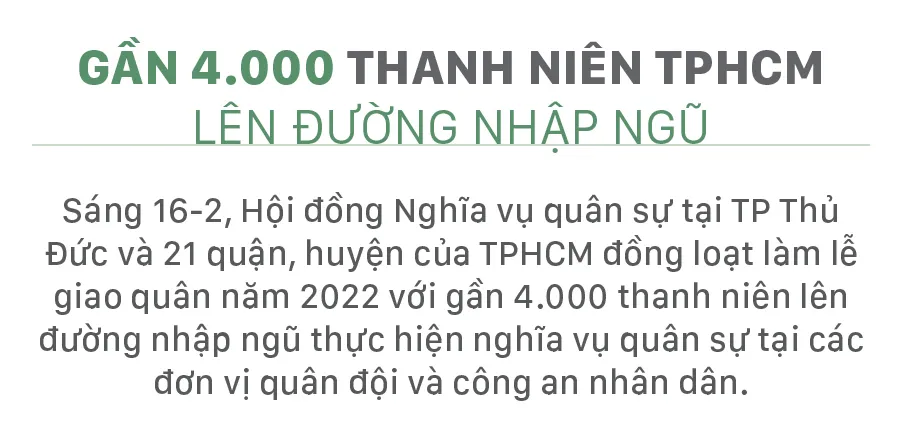 Trong số 545 thanh niên lên đường nhập ngũ năm nay, TP Thủ Đức thực hiện tuyển và giao 405 thanh niên cho các đơn vị quân đội và 140 thanh niên giao cho Công an TPHCM. Về chất lượng, có 4 đảng viên và 541 đoàn viên. Về học vấn có 234 thanh niên đạt trình độ trung cấp, cao đẳng và đại học.
