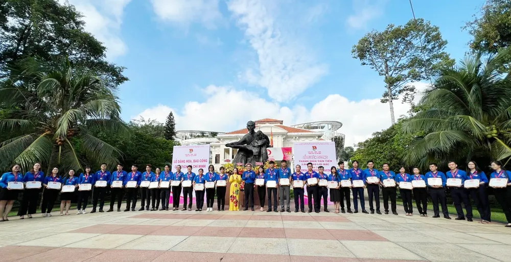 Dâng hoa trước Tượng đài Chủ tịch Hồ Chí Minh tại Nhà Thiếu nhi TPHCM