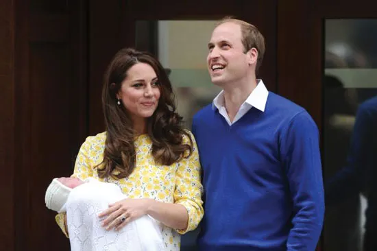 Công chúa Charlotte Elizabeth Diana cùng cha mẹ xuất viện ngày 2-5-2015. Ảnh: AP
