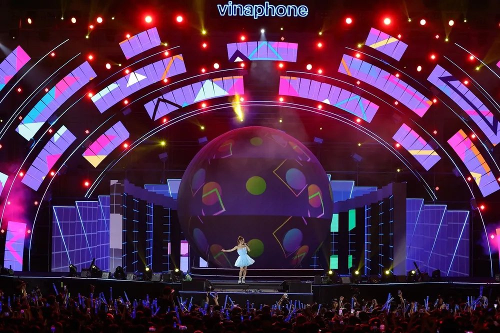 “Thank you, Vietnam by VinaPhone” lập kỷ lục mới, thỏa mãn cơn khát âm nhạc của giới trẻ ảnh 1 Sân khấu hoành tráng với công nghệ 4D mapping hiện đại, với điểm nhấn là quả cầu có đường kính lên đến 10m
