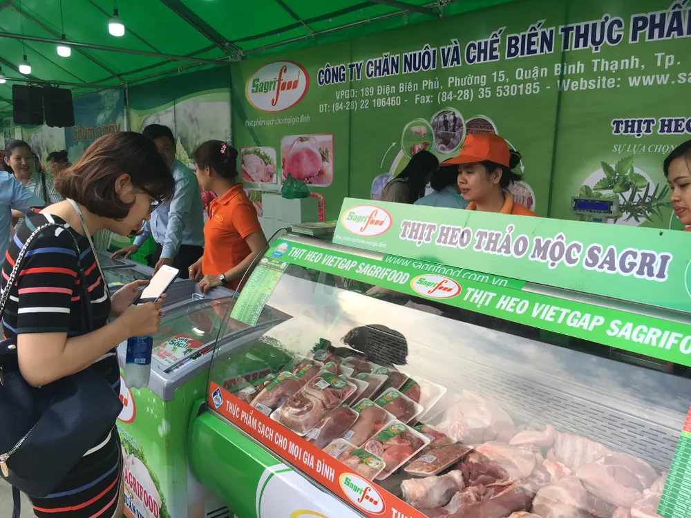Chợ phiên có 15 gian hàng như nông sản, trái cây, thực phẩm tươi, thực phẩm chế biến, gạo… Ngoài những sản phẩm thịt heo, thịt gà, thực phẩm chế biến, thịt heo thảo mộc của Sagri, còn có các gian hàng từ các doanh nghiệp khác như gạo, nông sản, hoa tươi, hoa lan, thực phẩm khô…