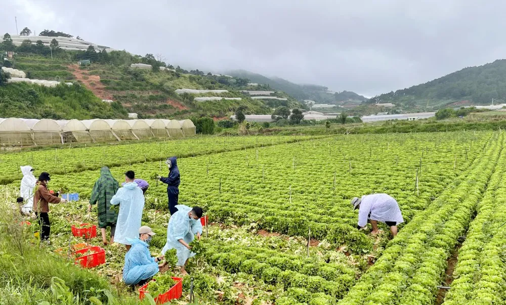 Dù điều kiện thời tiết nắng hay mưa thì người dân Lâm Đồng vẫn tích cực thu hoạch rau gửi các tỉnh