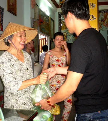 Ngoài ra, ban tổ chức còn phát thêm 200 phần cơm chay khác cho các bệnh nhân nghèo và dân lao động nghèo (ảnh) tại địa phương.