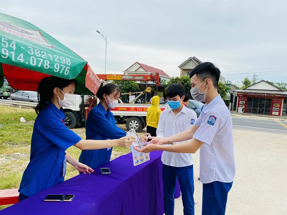 “Mặc dù giảm và dừng lực lượng "Tiếp sức mùa thi" trực tiếp song tại các điểm thi, chúng tôi đều chỉ đạo bố trí lực lượng cung cấp nước uống, khẩu trang, sát khuẩn... đầy đủ cho các thí sinh họ từ lấy sử dụng”, ông Cao Lê Tùng Nghĩa, Phó Bí thư Tỉnh đoàn Quảng Ngãi cho biết.