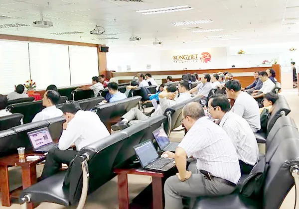 Nhà đầu tư giữ tâm lý thận trọng chờ tín hiệu từ FED nên thanh khoản thị trường thời gian qua giảm mạnh. (Nhà đầu tư tại sàn chứng khoán Rồng Việt. Ảnh: HUY ANH)