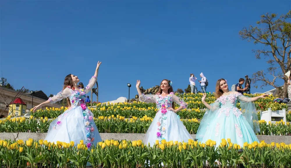 Giống như một mùa xuân khác giữa không gian xuân ngập tràn hoa của Bà Nà, mỗi show nghệ thuật cũng là câu chuyện về các loài hoa và “nữ hoàng” của sự quyến rũ – hoa tulip, được kể bằng vũ điệu, âm nhạc và cả những trang phục rực rỡ, cầu kỳ đến từng chi tiết.