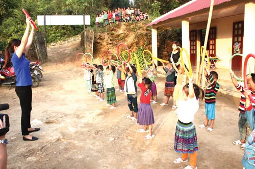 Các bé Trường Mẫu giáo Thải Giàng Phố (huyện Bắc Hà, Lào Cai) trong giờ thể dục buổi sáng cùng cô giáo Đàm Thị Thu Thủy