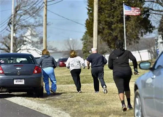 Phụ huynh chạy đến Trường Madison đón con sau khi nghe tin vụ nổ súng ngày 29-2-2016. Ảnh: Dayton Daily News