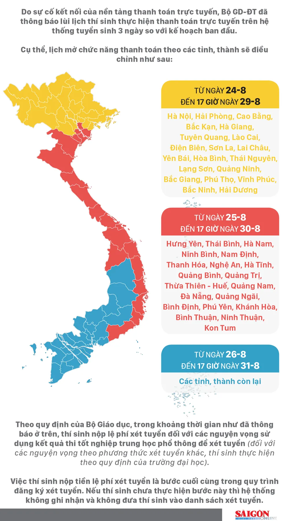 Do sự cố kết nối của nền tảng thanh toán trực tuyến, Bộ GD-ĐT đã thông báo lùi lịch thí sinh thực hiện thanh toán trực tuyến trên hệ thống tuyển sinh 3 ngày so với kế hoạch ban đầu.