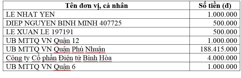 Và đã kịp thời chuyển những tình cảm, tấm lòng của các đơn vị, cá nhân trực tiếp chỉ định hỗ trợ các y, bác sĩ, nhân viên y tế, các chiến sĩ công an, quân sự, lực lượng liên ngành, tình nguyện viên và đồng hành, chia sẻ với những khó khăn của người nghèo, người bán vé số, người có hoàn cảnh khó khăn bị ảnh hưởng dịch Covid-19, với số tiền hơn 40 tỷ 067 triệu đồng, cụ thể: