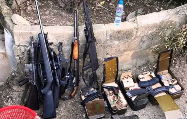 Nhiều loại súng quân dụng cùng hàng ngàn viên đạn bị lực lượng chức năng thu giữ khi triệt phá sào huyệt ma túy ở Lóng Luông