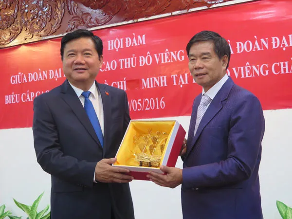 Bí thư Thành ủy Đinh La Thăng gửi lời mời lãnh đạo thủ đô Viêng Chăn sớm sang thăm TPHCM trong thời gian tới.