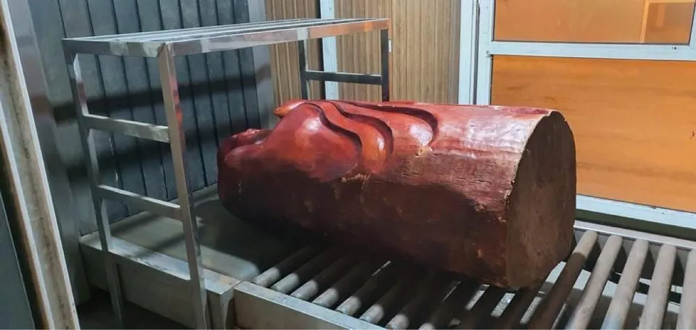 Theo đó, qua hệ thống máy soi chiếu hành lý của cơ quan hải quan tại luồng nhập cảnh từ Lào về Việt Nam, lực lượng chức năng đã bắt giữ đối tượng Nguyễn Thị Hồng Hà (sinh năm 1976, trú tại xã Sơn Lĩnh, huyện Hương Sơn, Hà Tĩnh) đang vận chuyển 98kg ma túy được cất giấu trong 5 pho tượng gỗ, có cài định vị.