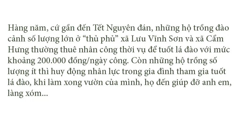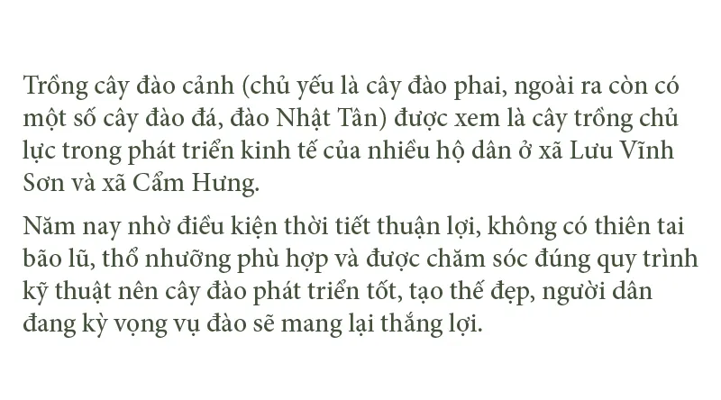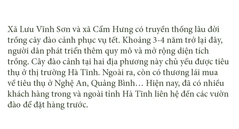 Những ngày này, tranh thủ tiết trời nắng ráo, hàng trăm hộ dân chuyên trồng cây đào cảnh tại “thủ phủ” trồng đào nổi tiếng nhất ở tỉnh Hà Tĩnh là xã Lưu Vĩnh Sơn (huyện Thạch Hà) và xã Cẩm Hưng (huyện Cẩm Xuyên) đang tất bật bước vào cao điểm tuốt lá, cắt tỉa cành khô, cành hỏng, chăm sóc kỹ lưỡng cho cây đào để chuẩn bị phục vụ thị trường Tết Nguyên đán Nhâm Dần 2022.