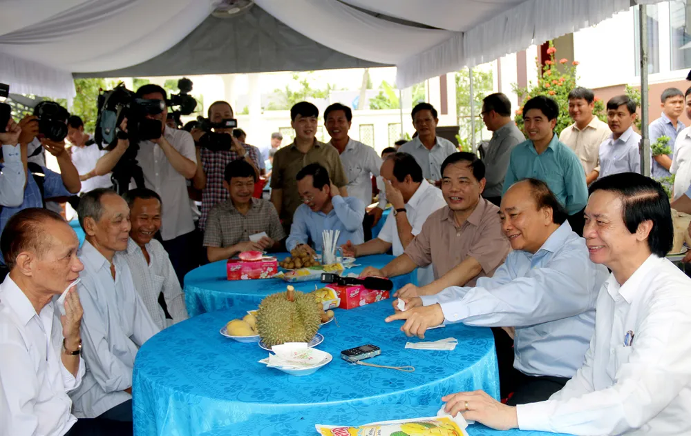 Sau khi lắng nghe ý kiến nông dân, Thủ tướng đã động viên người dân vượt qua khó khăn trước ảnh hưởng của hạn, mặn; đồng thời lưu ý nên xem xét chuyển hướng mùa vụ, từ sáng tạo trong xử lý sầu riêng trái vụ.