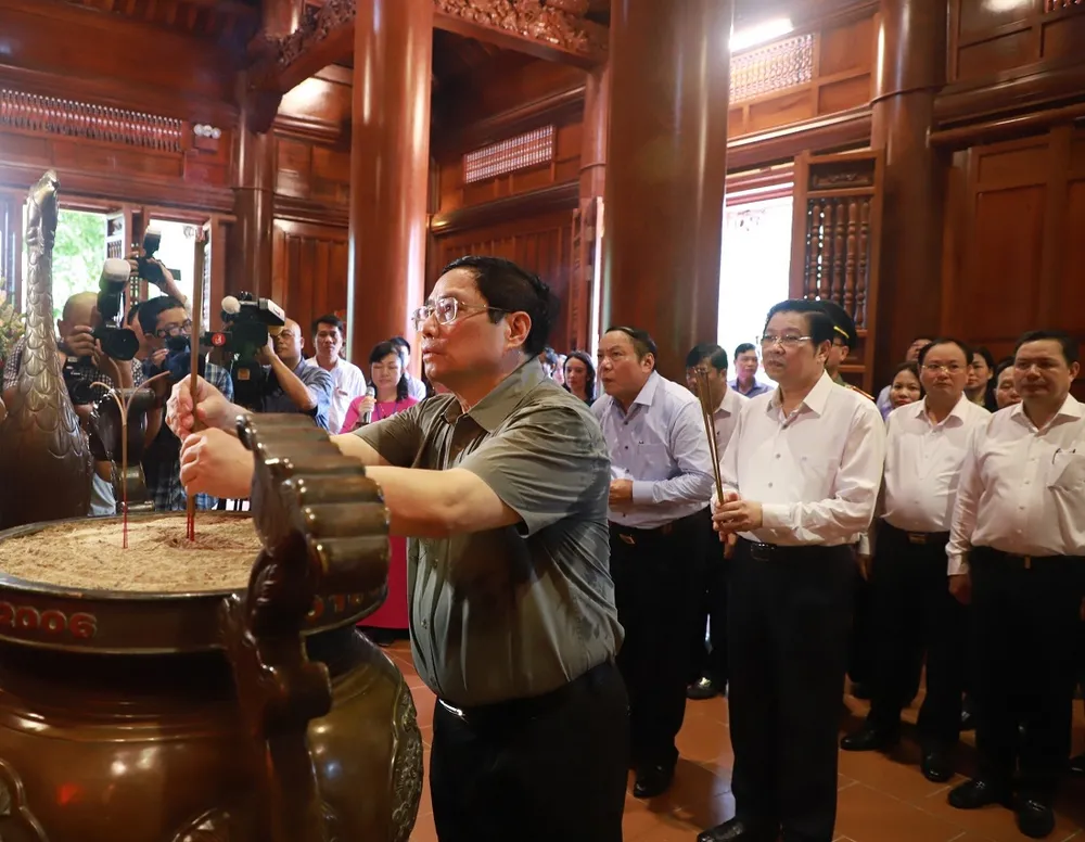 Thủ tướng Chính phủ cùng lãnh đạo trung ương, địa phương dâng hương tại đền Chung Sơn - đền thờ gia tiên Chủ tịch Hồ Chí Minh