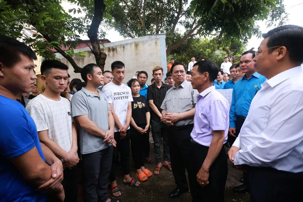 Ngay sau đó, Thủ tướng Chính phủ Phạm Minh Chính đến thăm một phòng trọ tại khu nhà ở xã hội dành cho công nhân của Công ty Fuji trên địa bàn TP Bắc Giang, tỉnh Bắc Giang.