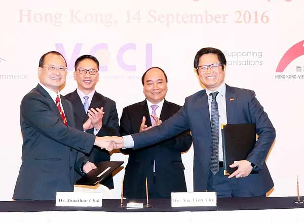Thủ tướng Nguyễn Xuân Phúc chứng kiến lễ ký thỏa thuận hợp tác giữa Phòng Thương mại -Công nghiệp Việt Nam và Phòng Thương mại Hồng Công - Việt Nam
