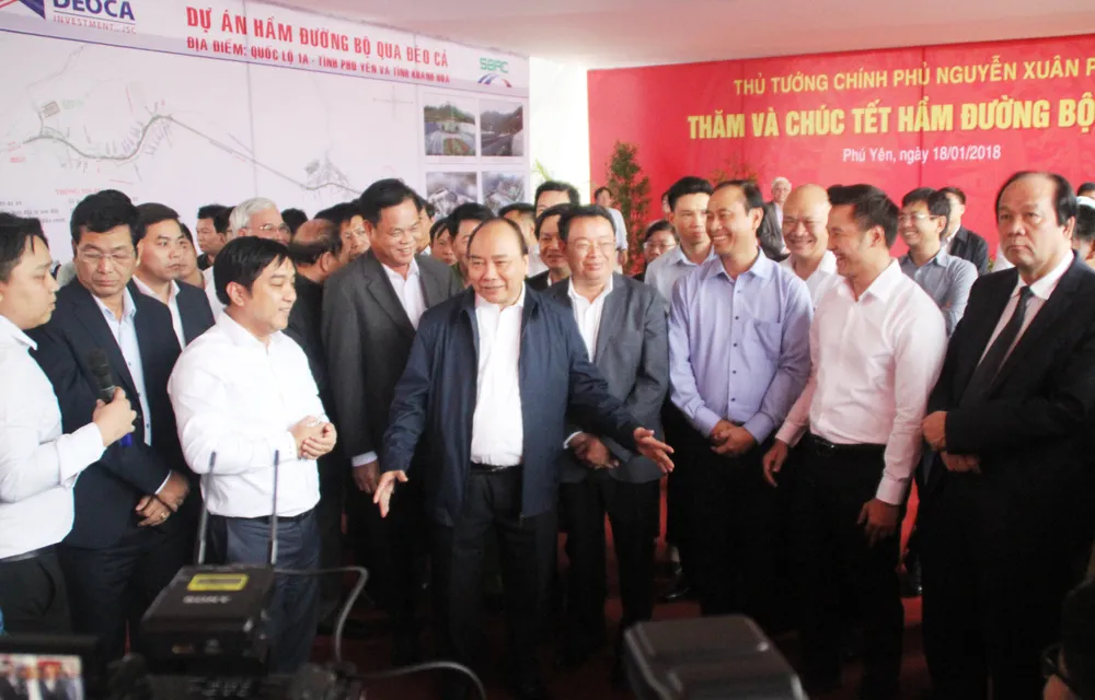 Trước đó, Thủ tưởng Nguyễn Xuân Phúc đã thăm, chúc tết và kiểm tra tình hình tại dự án hầm đường bộ qua Đèo Cả, do Công ty cổ phần đầu tư (CPĐT) Đèo Cả làm chủ đầu tư.